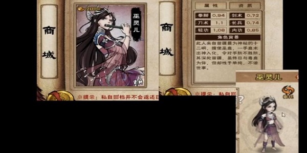 烟雨江湖巫灵儿是通过商城进行购买获取的,关于烟雨江湖巫灵儿多少元宝,相信很多小伙伴都还不知道具体的元宝数量吧!那么下面一起看看烟雨江湖巫灵儿多少元宝介绍吧。