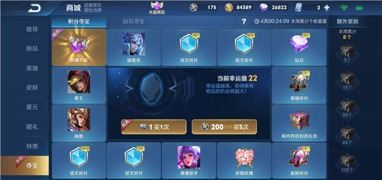王者荣耀积分夺宝中给玩家带来了很多的奖励,玩家可以通过荣耀积分来抽取奖池中的奖励,在幸运值满值的时候,玩家可以得到荣耀水晶,荣耀水晶可以兑换商城奖励,那么接下来和小编一起看一下积分夺宝幸运值满值介绍吧。